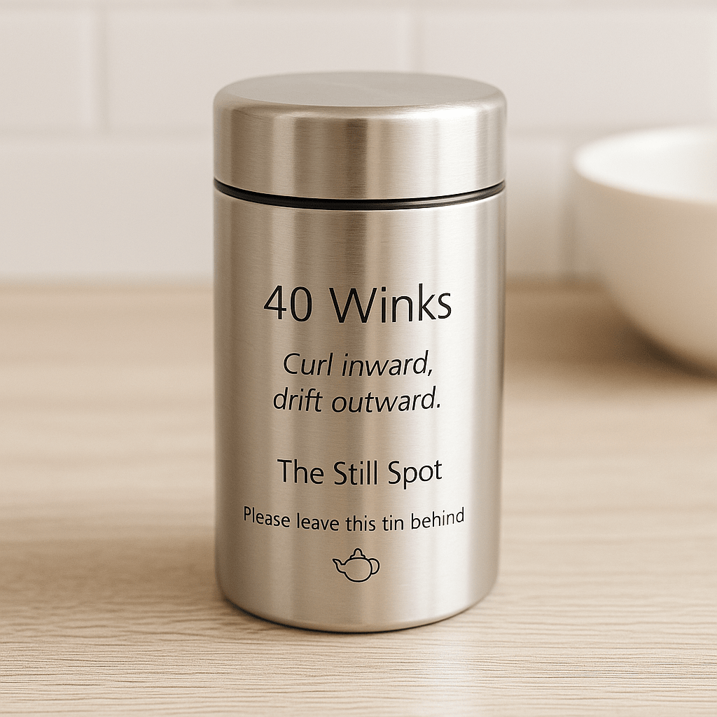 Supplied in reusable metal jars. No outer packaging — just a calm cup, brewed with intention.