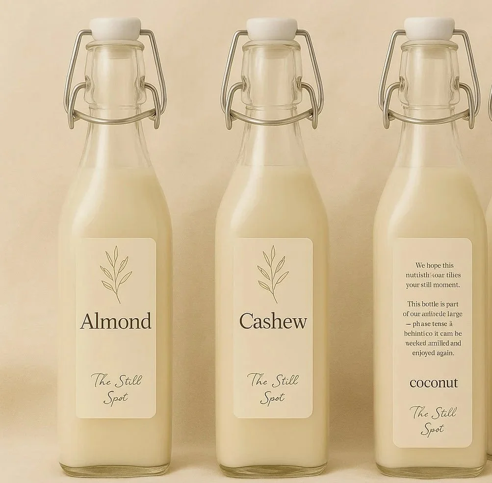 Handcrafted nut milks (Almond, Cashew, Hazelnut, Brazil Nut, Macadamia, Coconut)